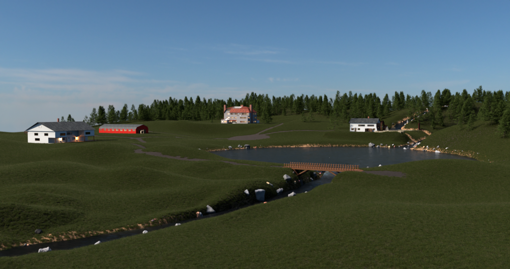 Elred Estates is the home of the Elred Royal family lineage. The Estate is located in the east of the Red Lands just outside Chara. It is situated on the edge of the Great Northern Forest next to a small stream and lake that flows from the west. It comprises the Manor House, a Guest House, a Mill, Shop and Blacksmithing building that is powered by a water wheel, and lastly the horse Barn and Stables.