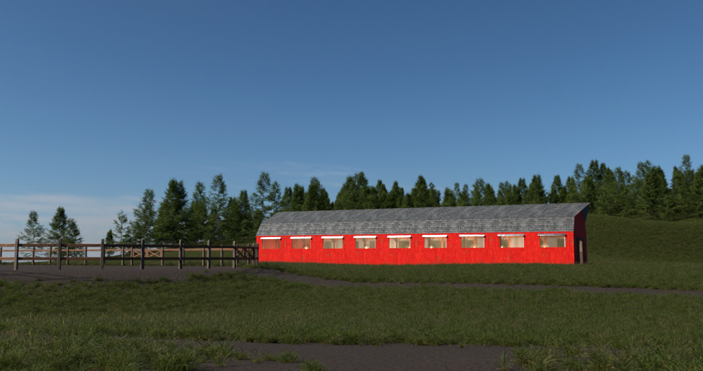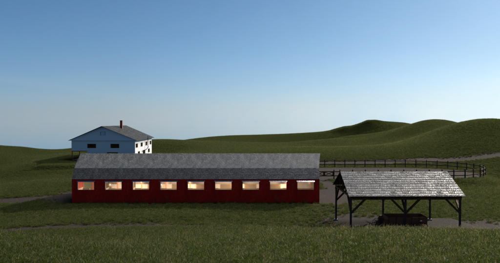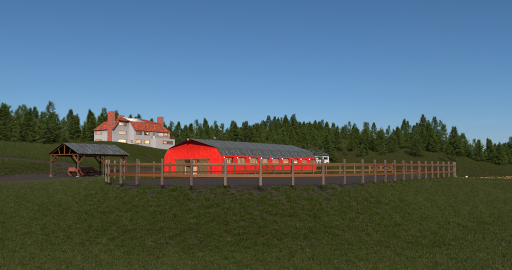 The barn is simplistic containing eighteen stalls. Most of which now are used for storage. The Carriage, Wagon horses are stabled here as well as the families personal animals.