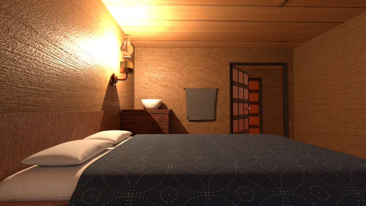 Going through the rear hall is six doors that lead to the bedrooms. Each bedroom has a bed, dresser and wash bowl as well as a towel provided. At the end hall is another storage area that gives access to the propellers steam turbines and a large service door to the rear coal chute.
